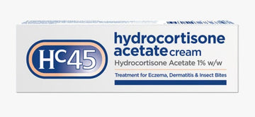 Hc45 Hydrocortisone Cream contains 1% w/w hydrocortisone acetate, an ingredient that works by changing how your body reacts to irritants (which can aggravate eczema and dermatitis) and insect bites. This reduces inflammation in the skin, which helps to reduce symptoms like redness, itching and swelling.