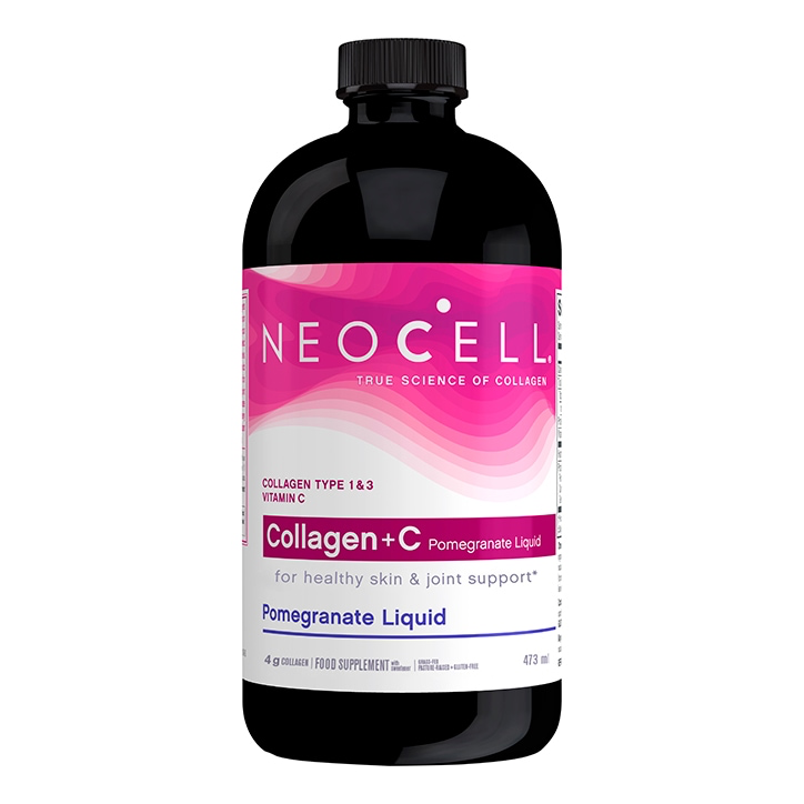 Collagen+C Pomegranate Liquid est un mélange scientifiquement formulé de peptides de collagène primés et cliniquement étudiés de NeoCell, de vitamine C et de nutriments de soutien. La vitamine C avec le collagène contribue à la formation normale de collagène pour le fonctionnement de la peau et des os.