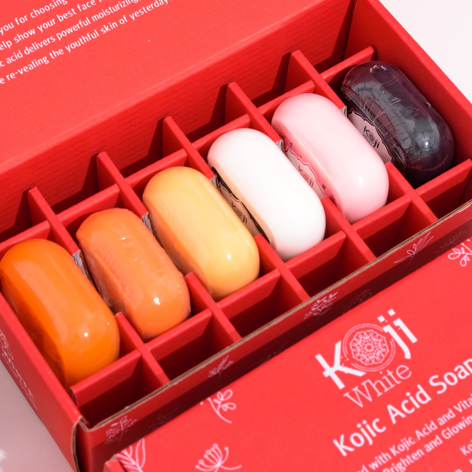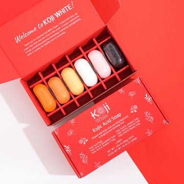 Pamper yourself or a loved one with the Kojic Acid Skin Brightening Soap Gift Set, a specially curated collection of our best-selling Kojic Acid soaps designed to brighten, even out skin tone, and reduce the appearance of dark spots and hyperpigmentation. This gift set combines the power of Kojic Acid, a proven skin-brightening ingredient, with gentle, nourishing formulations that leave skin feeling soft, smooth, and radiant.