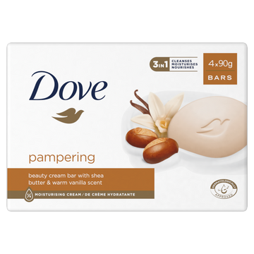 Indulge your skin with the Dove Purely Pampering Shea Butter Beauty Bar. Enriched with shea butter and 1/4 moisturizing cream, this gentle soap bar cleanses without drying, leaving your skin soft, smooth, and deeply nourished. Perfect for daily pampering and hydration.