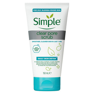 Refresh and renew your skin with new Simple Daily Skin Detox Clear Pore Scrub, our exfoliating scrub specially designed for oily skin. Blended with thyme, zinc and witch hazel, this facial scrub cleanses deep down to help eliminate pore-clogging dirt, oil and make-up to leave skin purified. While added bamboo exfoliators gently refine pores and rough, uneven patches to leave skin clear and smooth